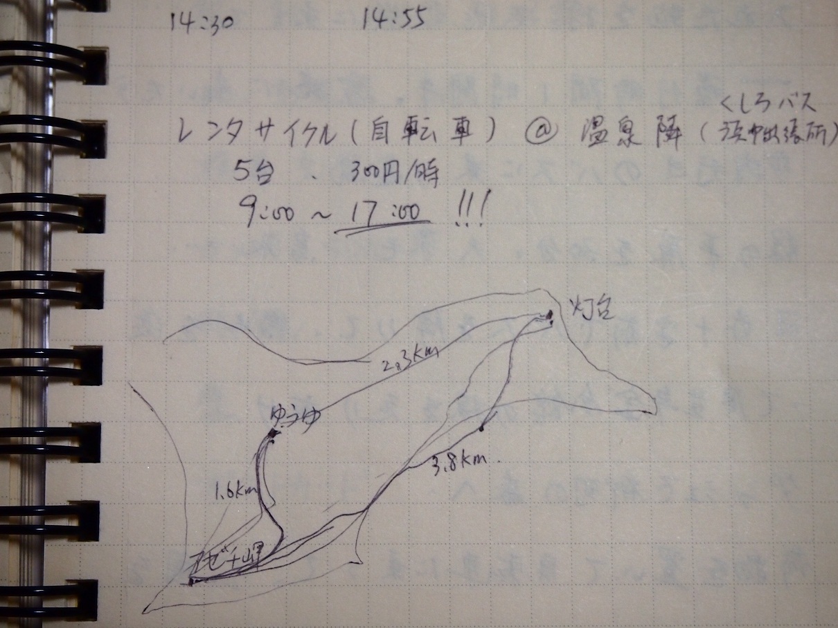 事前に日の入り時間や岬までの距離とかを調べたら、自転車は結構キツそう。