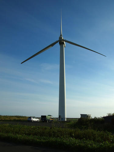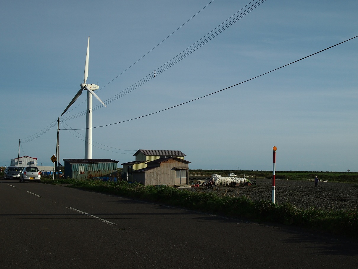 太陽の下にあの風車が見える
