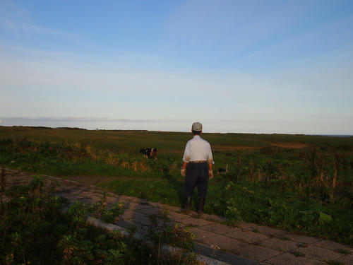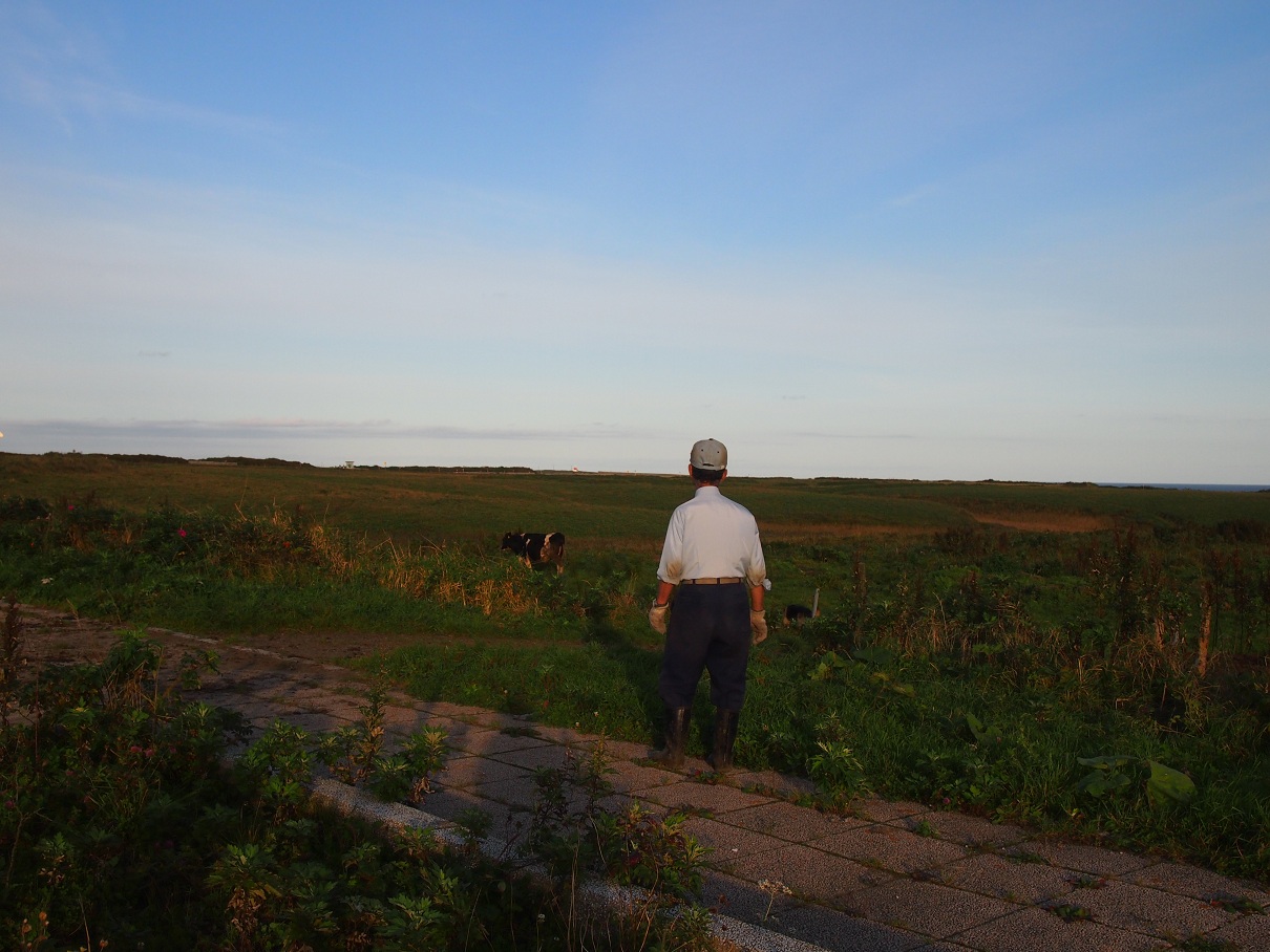 あるおじいさんが牛くんたちに「帰るぞ!」って呼んでる